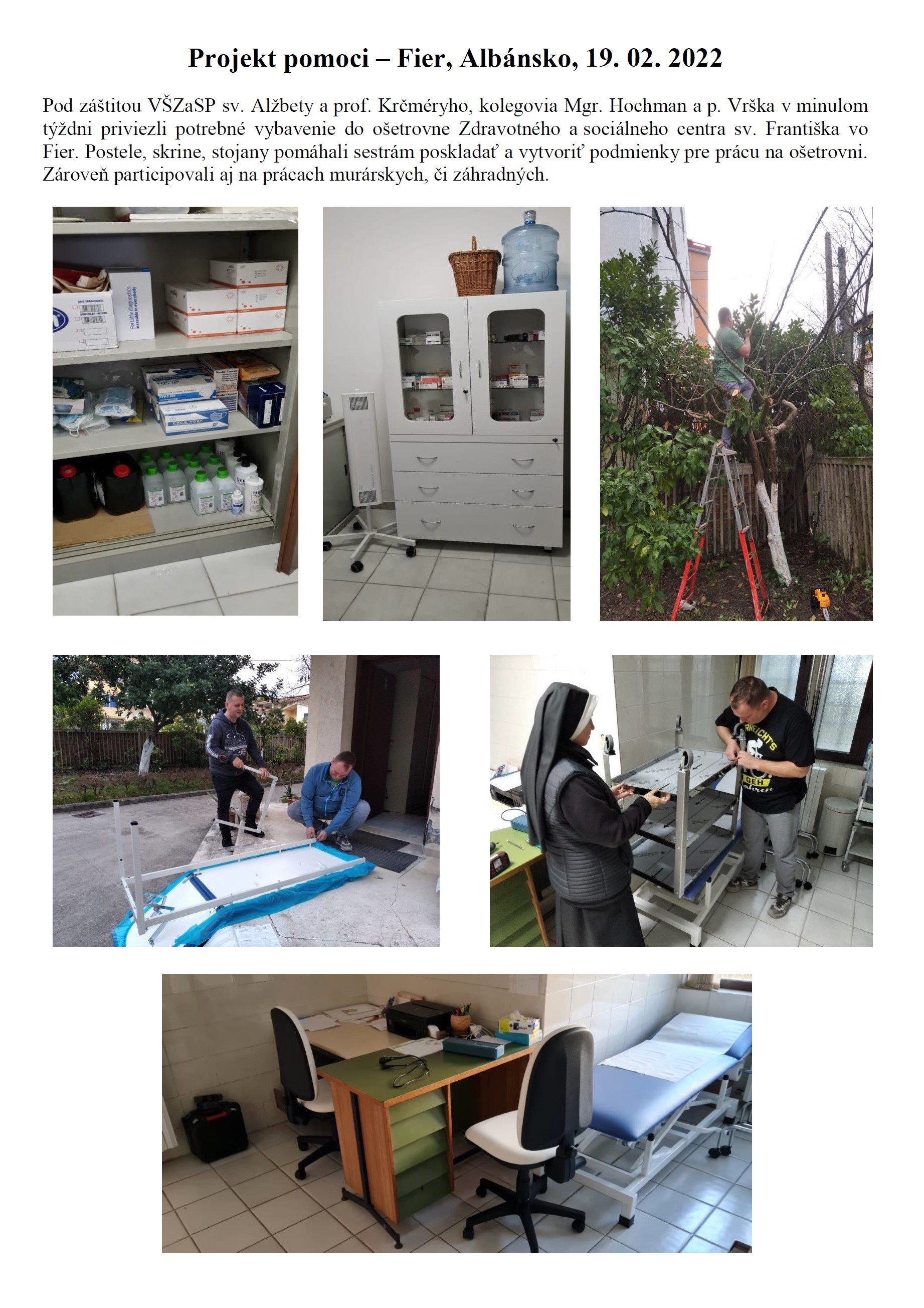 Práca teamu VŠZaSP sv. Alžbety pre migrantov a stretnutie so sv. otcom v UNHCR tábore Lesbos. Myslime cez Vianoce na našich 24 lekárov, sestier a sociálnych a misijných pracovníkov VŠZaSP sv. Alžbety a Dvojfarebného sveta, ktorí budú slúžiť tisíce kilometrov od domova. ![]() (za usg MUDr. Tomáš Simonek) Zdravotné a sociálne centrum sv. Františka, Fier, Albánsko Mgr. Hochman, p. Vrška a skvelé sestry sv. Františka vo Fier, sr Alena a sr Mária pri rozdeľovaní humanitárnej pomoci