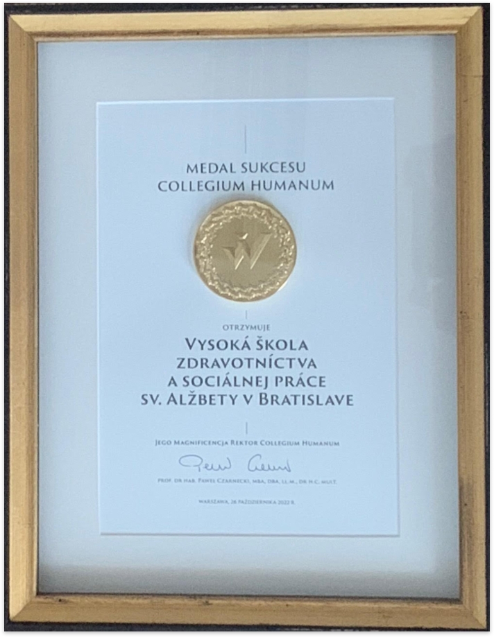 r. 2022 - Univerzita Collegium Humanum vo Waršave, dňa 26. 10. 2022, udelila za sociálnu a charitatívnu činnosť, rektorovi Vysokej školy zdravotníctva a sociálnej práce svätej Alžbety, Dr. h. c. prof. MUDr. Jurajovi Bencovi, PhD. MPH, Zlatú medailu Collegium Humanum, ktorá je najvyšším ocenením za spoluprácu a zapojenie sa do rozvoja univerzity. tlačová správa tu